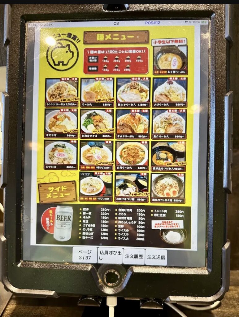 注文は席ごとに設置されているタブレットで済ませることができるので、焦らずじっくりとメニューを組み立てられた(^ ^)